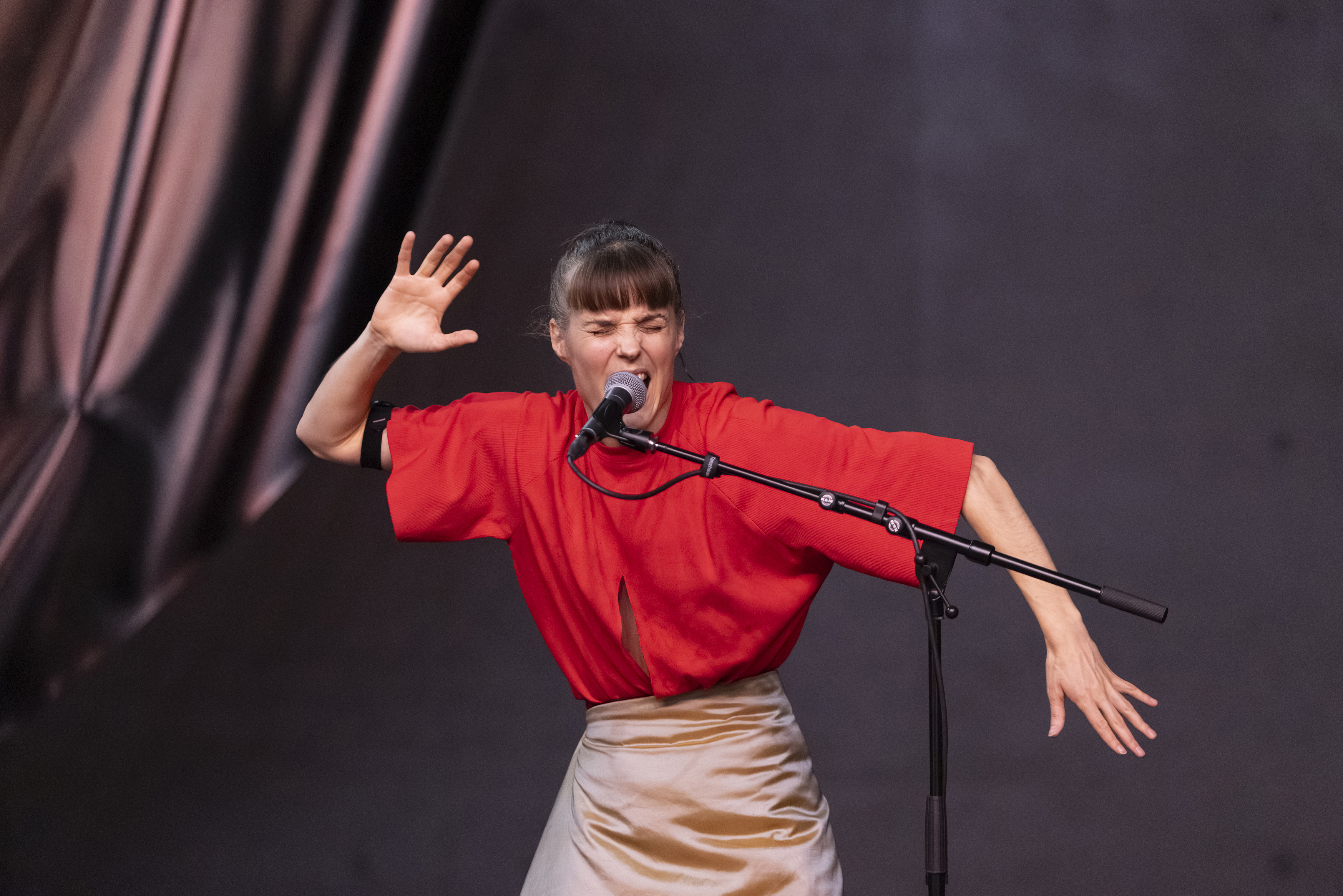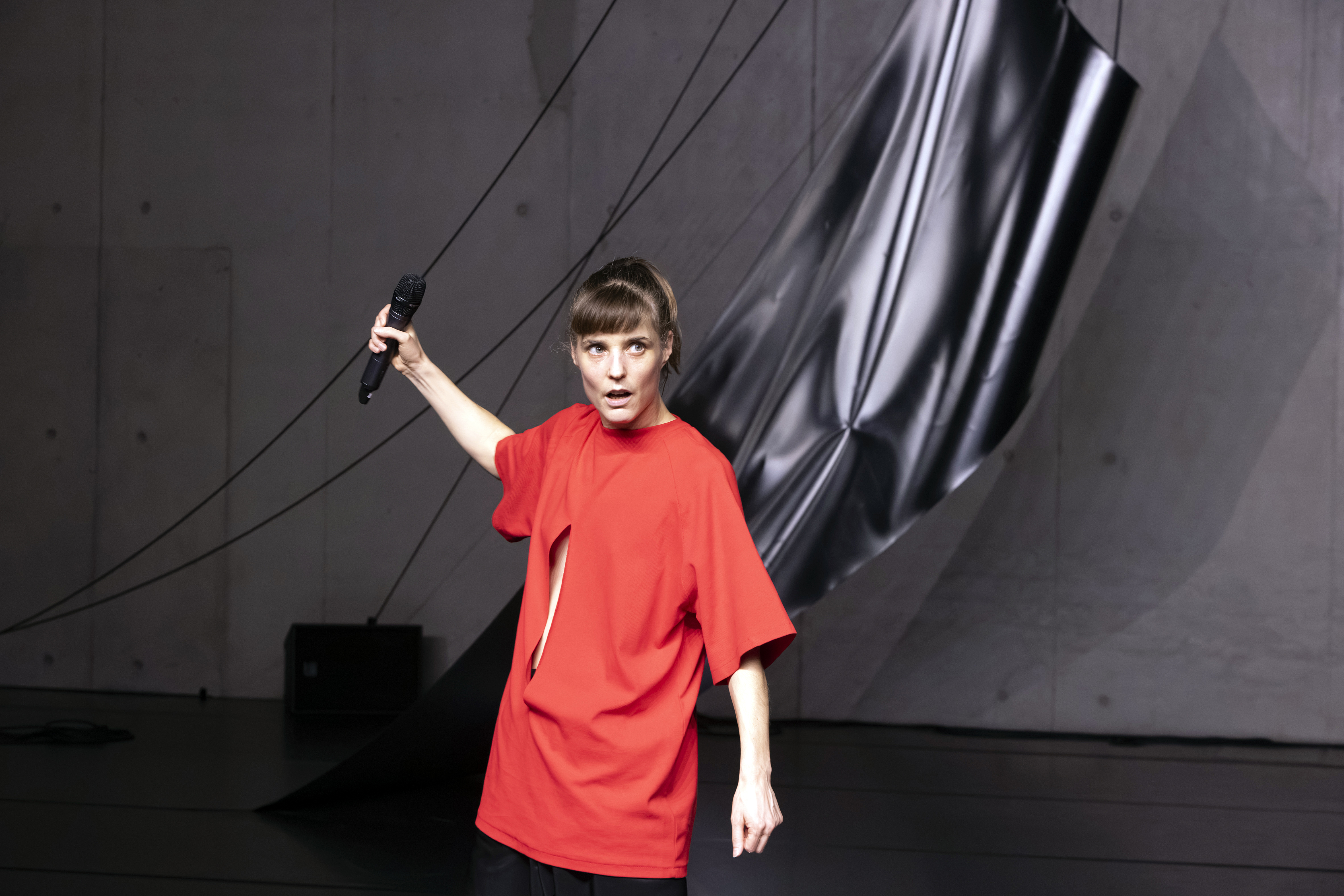 Im Solo Schmerzstück setzt sich Cosima Grand mit den emotionalen, körperlichen und zeitlichen Dimensionen von Schmerz auseinander. Mit Körper und Stimme macht sie seine Intensität und Emotionalität spürbar – ebenso wie seine zyklische Wiederkehr und die plötzlichen Unterbrechungen, die Schmerz in der Zeit markiert.